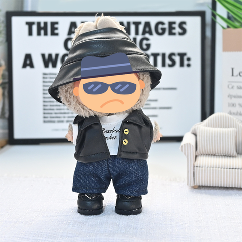 ชุดเสื้อผ้าตุ๊กตามาการอง17ซม.-เสื้อแจ็คเก็ตหมวกหนัง DIY 4ชิ้นสำหรับเสื้อยืดและกางเกงยีนส์สำหรับเสื้อผ้า labubu (ไม่รวมตุ๊กตา)